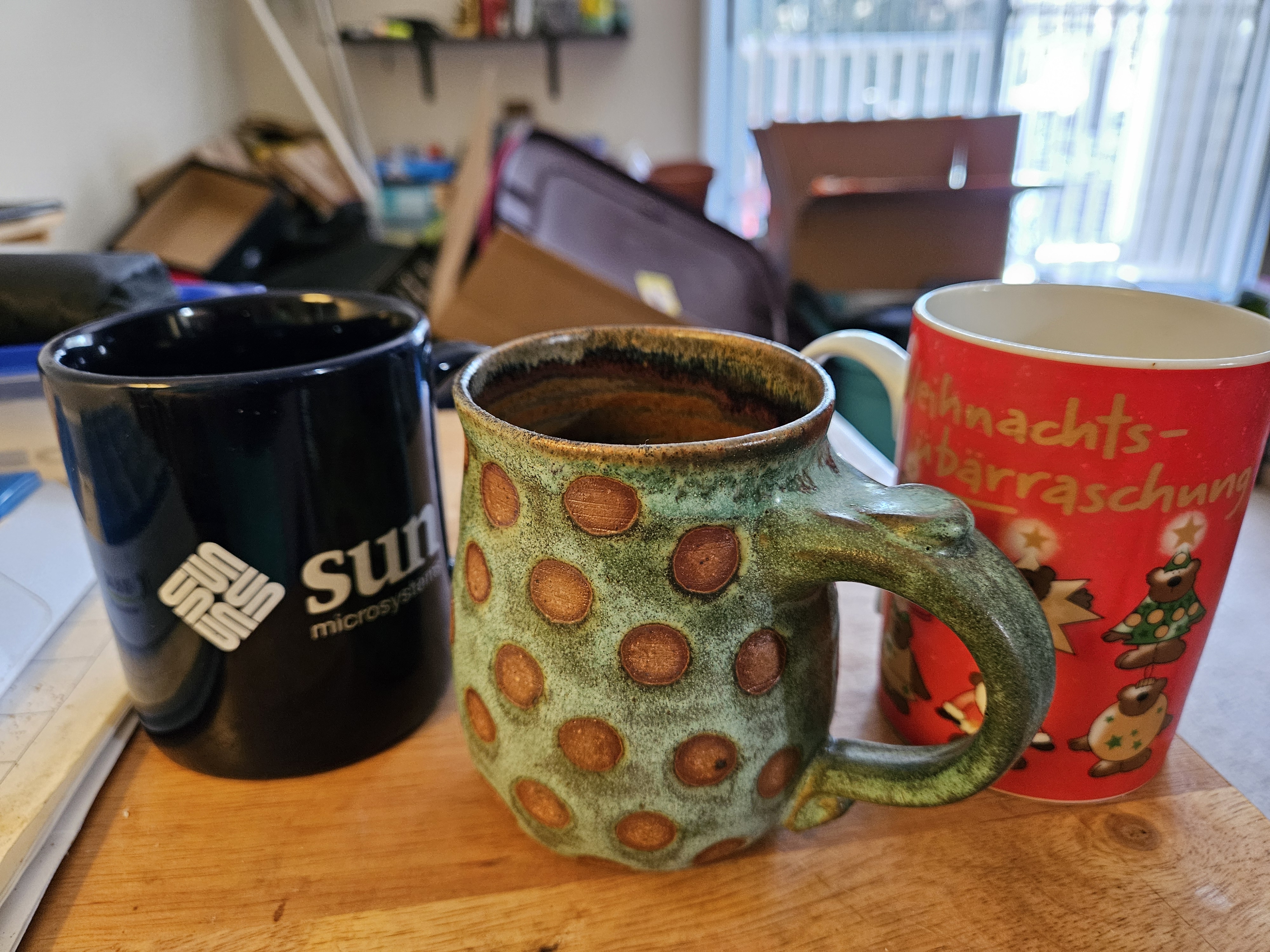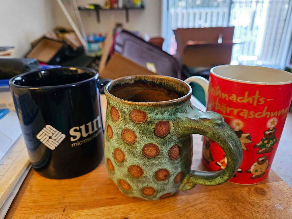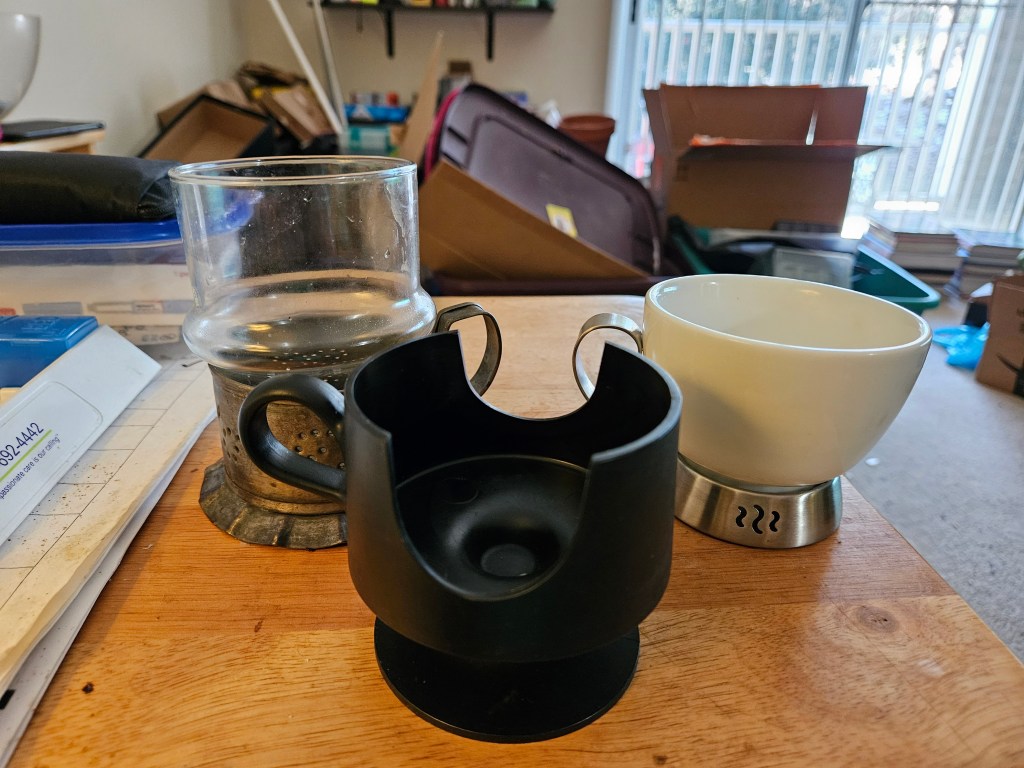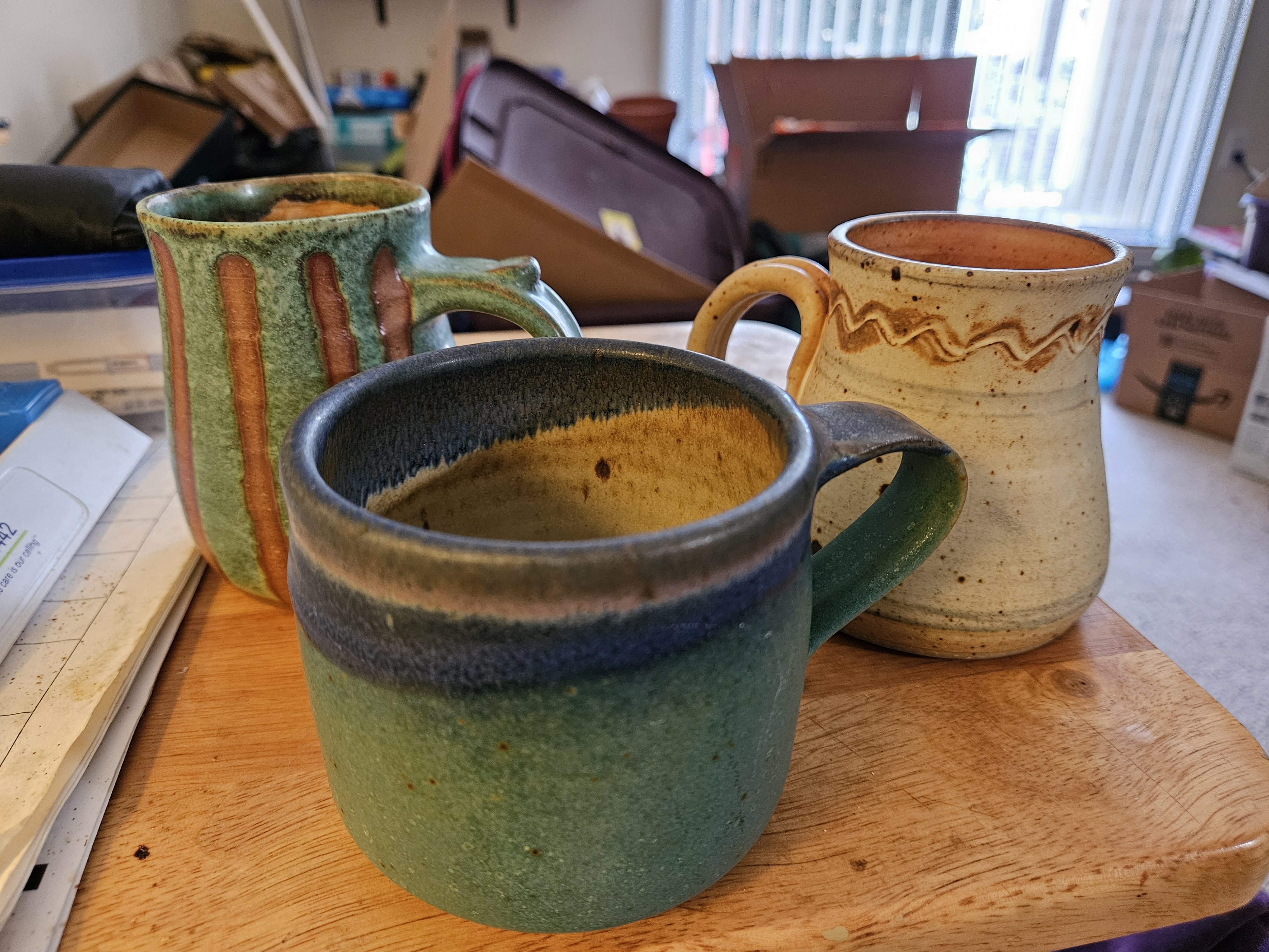 This may be the perfect spot to show my current coffee/tea cups/mugs. I’ve been thinking about getting rid of all but about three of them, but don’t quite know which three to keep. I did have a favorite, large, blue glass mug that cracked, and I didn’t replace it because of how expensive a replacement would be.