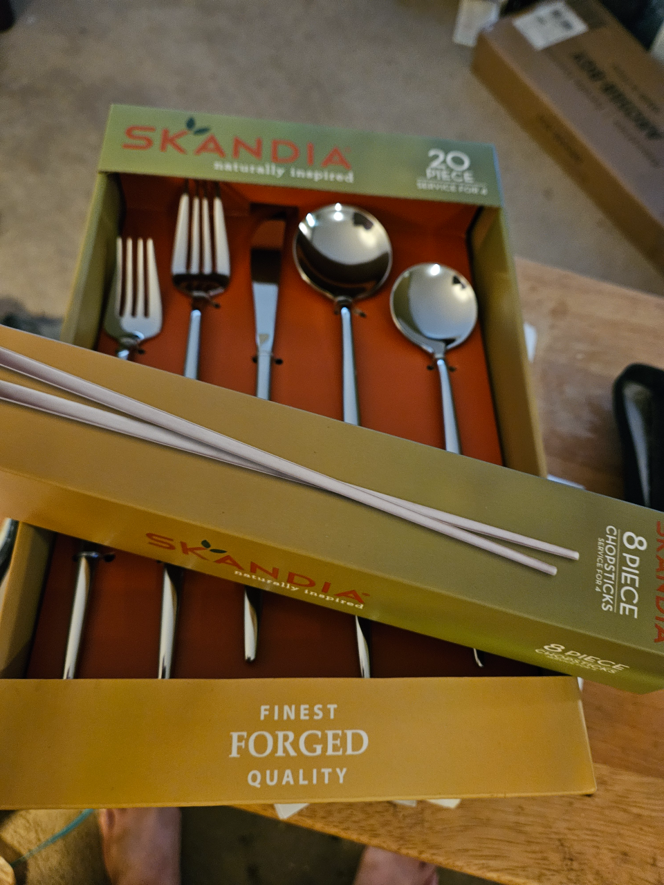 However, there is something rewarding about having a set of stainless steel chop stix. Well four sets. One for each place setting. [end NOTE]