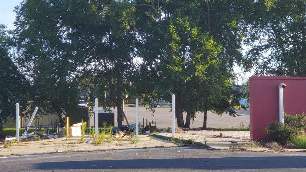 “Fred Chaisson’s Grandsons Buffet” on 3901 Ramsey Street fell prey to COVID. They closed when other restaurants were closing their buffets, and never opened again. And after a couple of years, I was riding by the other day and looked over to see that they had torn down most of the building. And by later that day, they finished the building demolish. Today as I rode past, it looks like they have cleaned up the rest of the parking area.