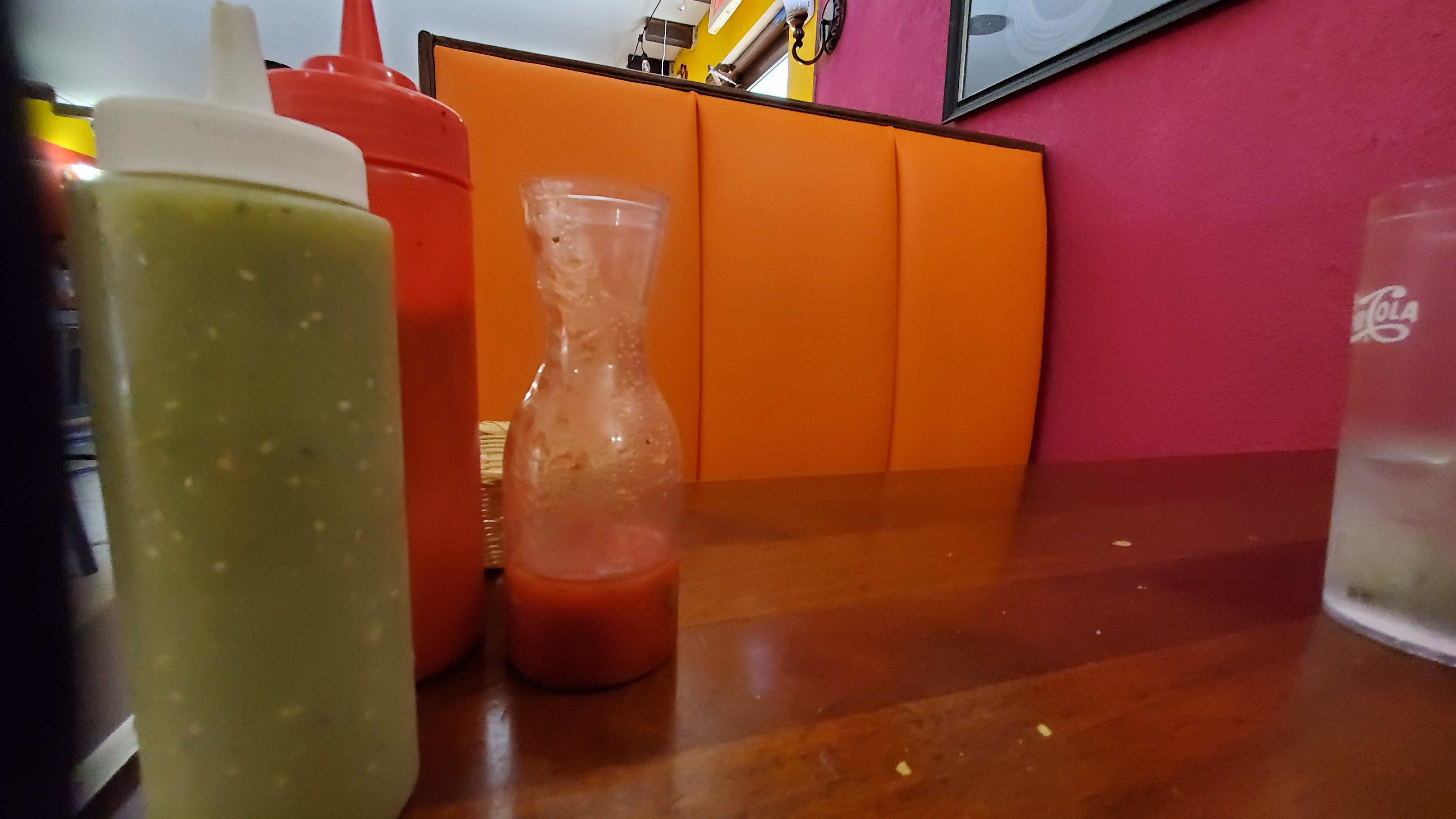 I had lunch at “Tacos Mexico” in Apex, NC. Their Lunch #3 included chips & salsa, a Chile Relleno, a Beef Enchilada, Spanish rice and refried beans. I drank water, but think that might be the 16 cents Surcharge on the bill. The basic salsa was bland, but had bits of onion and cilantro. I asked for hot sauce and some packets of sweetener. The waitress brought back the sweetener and two squeeze bottles, one with a green mild sauce, and one that she said was really hot. It was really hot so I just used a little and some sweetener to make my sweet hot salsa.