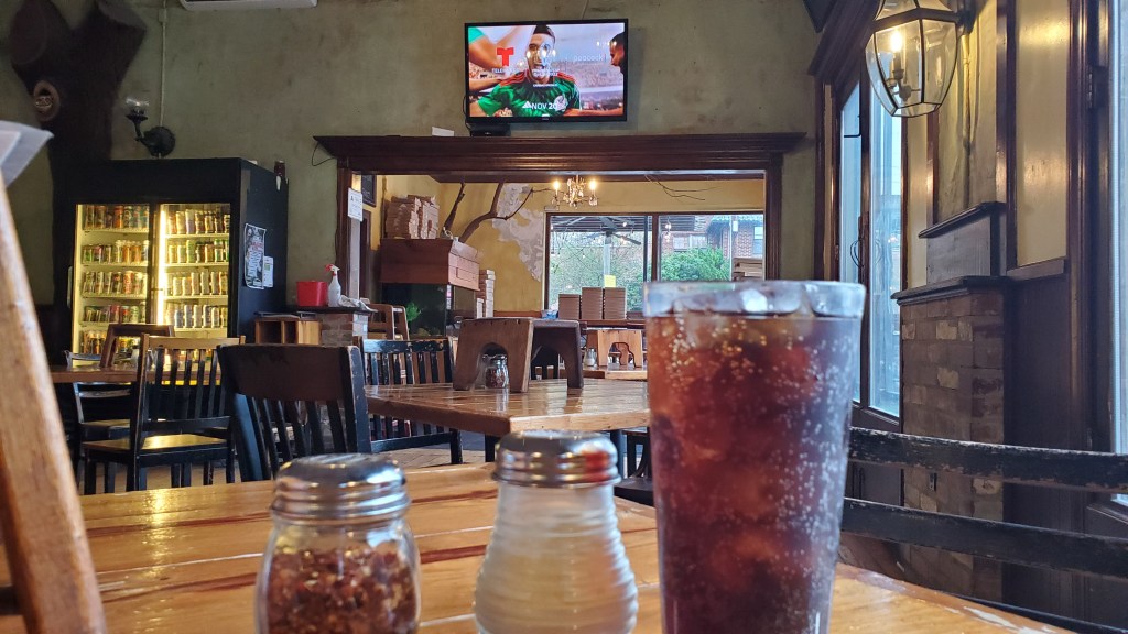 I’ve written about Sticks and Stones Pizza in Greensboro, North Carolina in several locations, but I wanted to add a set of images of one of the pizzas that might have been the best I ever had. I now consider my time passed, for having an excellent pizza at this restaurant/bar. I think the people that knew how to fix a really good wood fired pizza have left and the skill hasn’t been passed on. My last two visits have produced a poorly flavored pizza, but I have had quite a few really good pizzas since my first visit. Hopefully I’ve written elsewhere, where I first heard about this restaurant, on some morning news program that said something to the effect that this was one of three pizza joints in the whole United States that produced a really good wood fired pizza. When I heard that I made up my mind that I was going to visit this restaurant and see if their pizza was really that good… and it was!