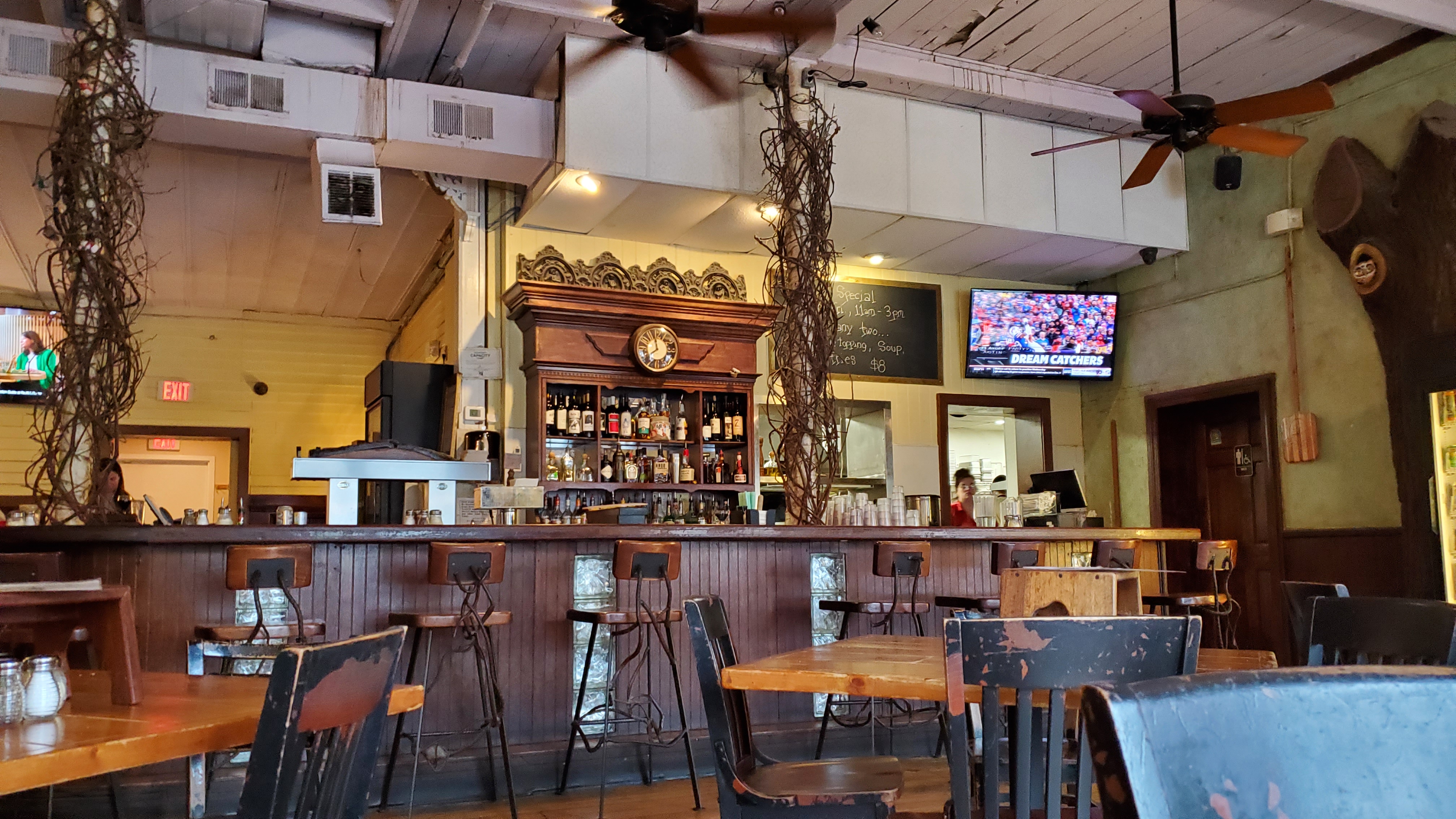 I’ve written about Sticks and Stones Pizza in Greensboro, North Carolina in several locations, but I wanted to add a set of images of one of the pizzas that might have been the best I ever had. I now consider my time passed, for having an excellent pizza at this restaurant/bar. I think the people that knew how to fix a really good wood fired pizza have left and the skill hasn’t been passed on. My last two visits have produced a poorly flavored pizza, but I have had quite a few really good pizzas since my first visit. Hopefully I’ve written elsewhere, where I first heard about this restaurant, on some morning news program that said something to the effect that this was one of three pizza joints in the whole United States that produced a really good wood fired pizza. When I heard that I made up my mind that I was going to visit this restaurant and see if their pizza was really that good… and it was!